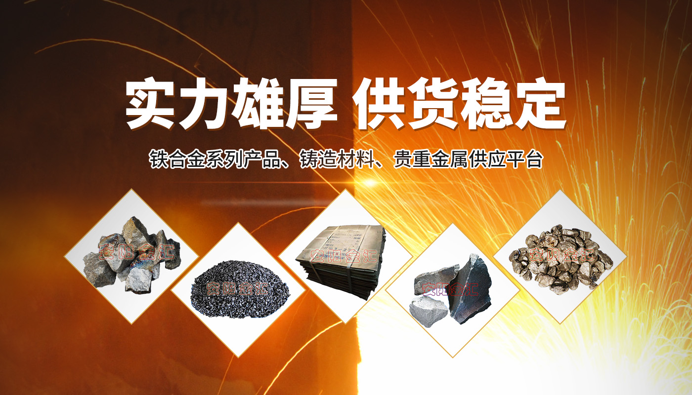 安陽市金匯鐵合金有限公司位于我國七大古都之一、甲骨文之鄉——河南安陽,公司自2010年成立以來,多次被安陽市政府評為“重合同、守信用企業”、“誠信經營企業”,2010年5月被上海世博會民企組委會評為上榜民營企業,同年9月我公司產品宣傳廣告被阿里巴巴推薦在央視一套節目連續播出,在同行業反響熱烈,2022年4月公司順利通過ISO9001產品質量體系認證。公司是安陽市鐵合金商會副會長單位、安陽市工商聯副主席單位、安陽市慈善總會副會長單位。  我公司系華北地區規模較大的一家銷售鐵合金系列產品、鑄造材料、貴重金屬的民營企業。主要銷售:硼鐵、錳鐵、鉻鐵(高、中、低、微)、硅鐵、孕育劑、硫化鐵、電解錳、稀土硅、稀土鎂、磷鐵、除渣劑、增碳劑、鉬鐵、鎢鐵、釩鐵、鈦鐵、鈮鐵、硅鐵、金屬鉻、鎳板、電解銅等產品?! 」緭碛袠I務團隊、雄厚的實力、完善的服務,努力建設成一站式供應、多元化服務的鐵合金、鑄造材料供應平臺?!  罢\乃德之本、信乃商之根”,我公司就是奉行“客戶為首誠信為上”這個宗旨,贏得了廣大客戶的良好口碑,我們真誠的希望與廣大新老客戶同謀發展,共圖大業!